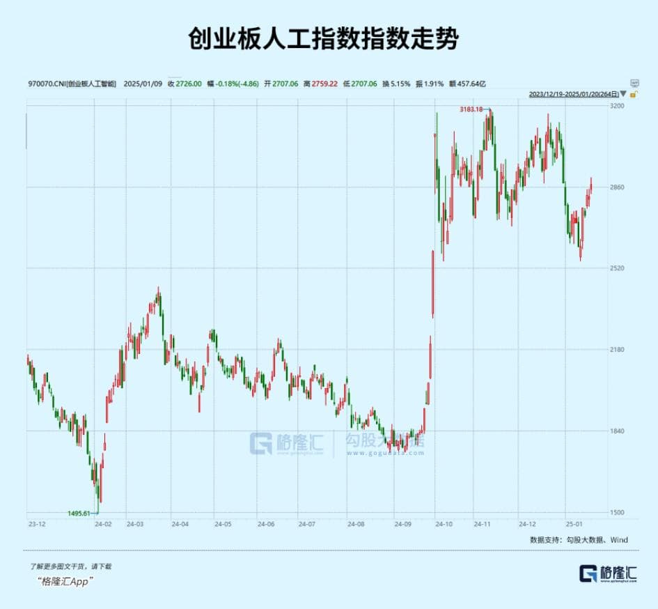 创业板人工智能指数中长期业绩堪称优秀,wind数据显示,截至2025年1月20日,创业板人工智能指数自2023年以来累计涨幅超104%,大幅跑赢同类主题指数。