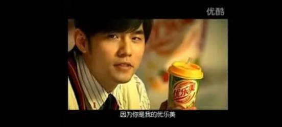 昏黄色调钢琴音乐起,还没胖的周杰伦穿着校服背心,对旁边的女孩羞涩一笑,说“因为你是我的优乐美”。