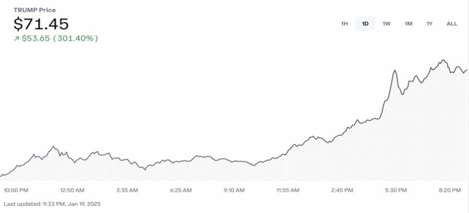 得益于特朗普的影响力和号召力,TRUMP币吸引了大量粉丝和投资者跟风爆买,一经上线便坐上“火箭”。
