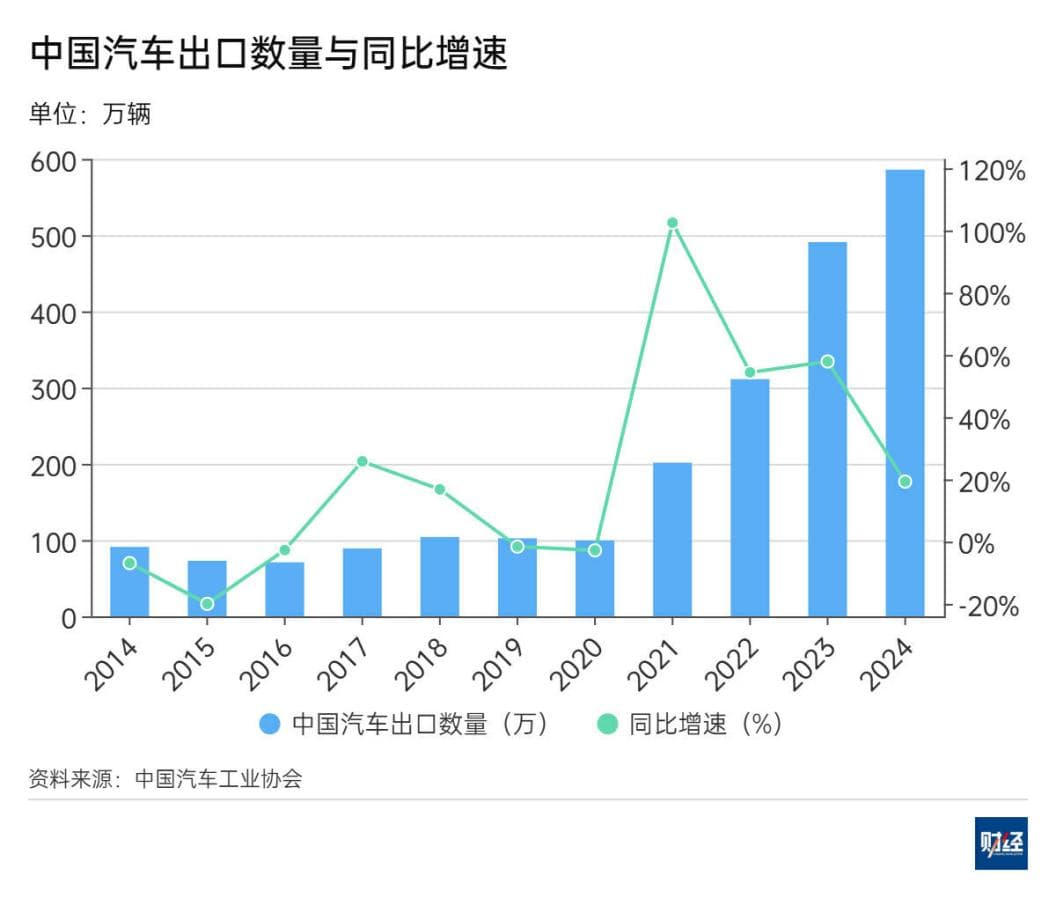 一个确定的事实是:中国汽车出口还在增长,但增速变慢了。中汽协预计,2025年中国汽车出口预计620万辆,同比增长5.8%。