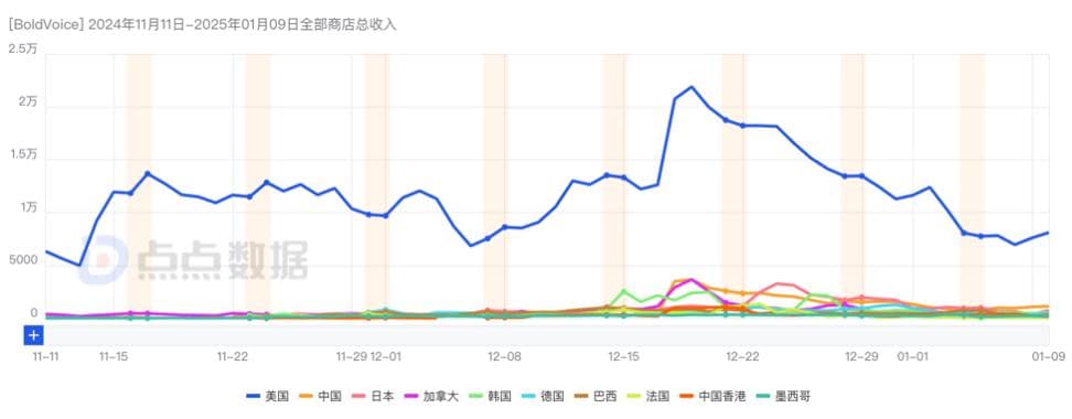BoldVoice 11 月至今收入变化曲线|图源:点点数据