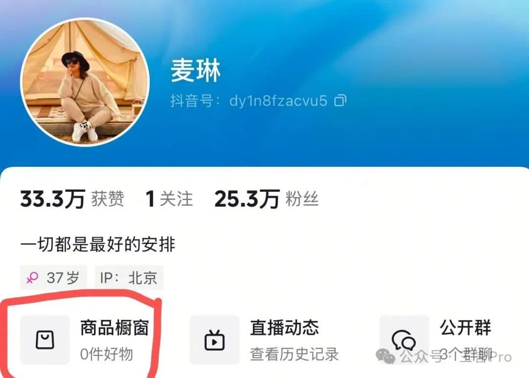 三言发现麦琳的抖音账号已经开通了橱窗功能,正如她的签名“一切都是最好的安排”。