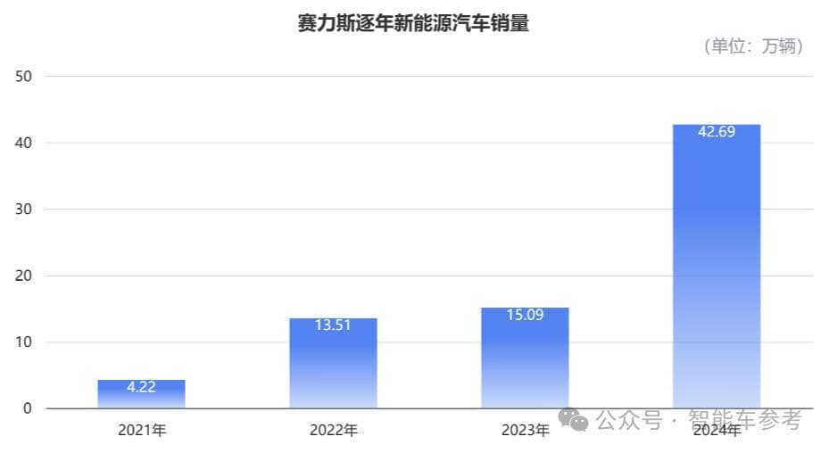 其一,是年初提出要实现倍增计划,而如今赛力斯实现新能源汽车全年销售42.69万辆,同比增长1.8倍,已超额完成了计划。