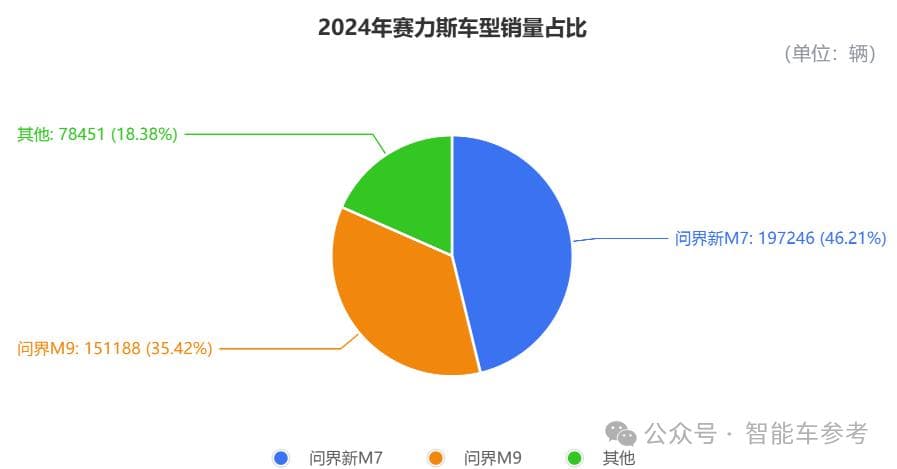 2024年,问界M9累计交付了151188辆车,问界新M7交付197246辆车,这两款车的销量,占据赛力斯总销量的81.6%。