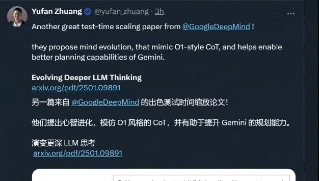 [2]https://www.reddit.com/r/singularity/comments/1i5o6uo/google_deepmind_evolving_deeper_llm_thinking/