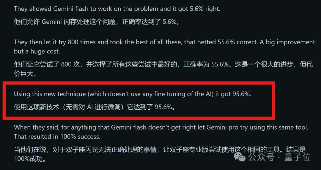 而且,如果继续将Gemini 1.5 Flash未解决的问题丢给1.5Pro,其成功率更是上升至100%和98.4%。