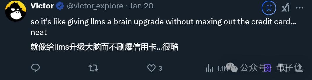 总之按网友形容,这项研究就像给大语言模型升级大脑而不刷爆信用卡,酷酷酷!!