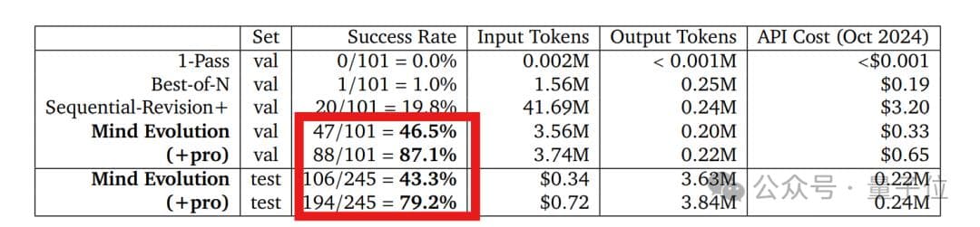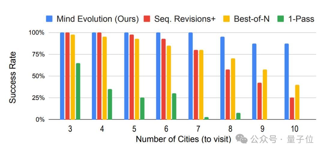 而从相关实验来看,Mind Evolution也经受住了这一复杂任务的考验。