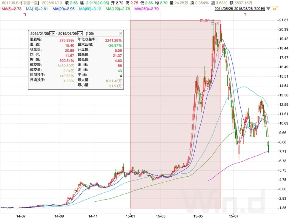 图:中国一重2014~2015年间股票走势;资料来源:wind,36氪