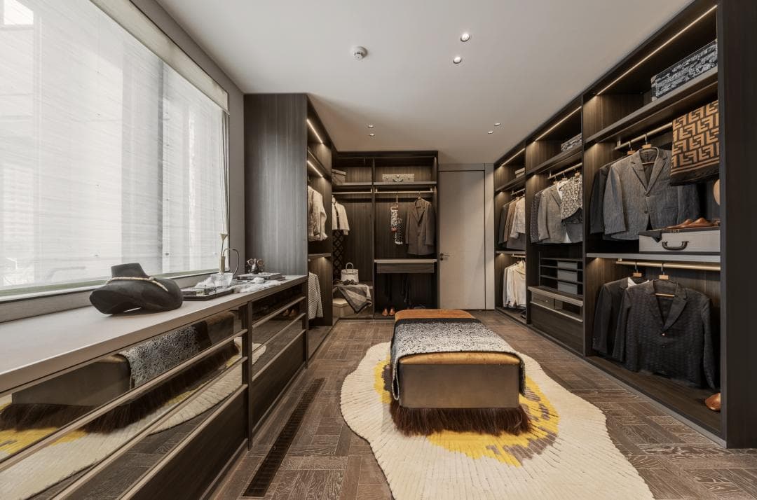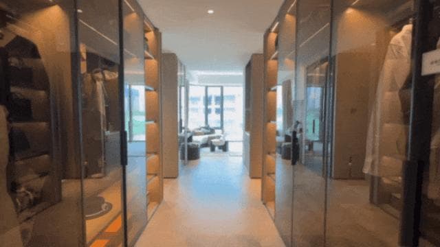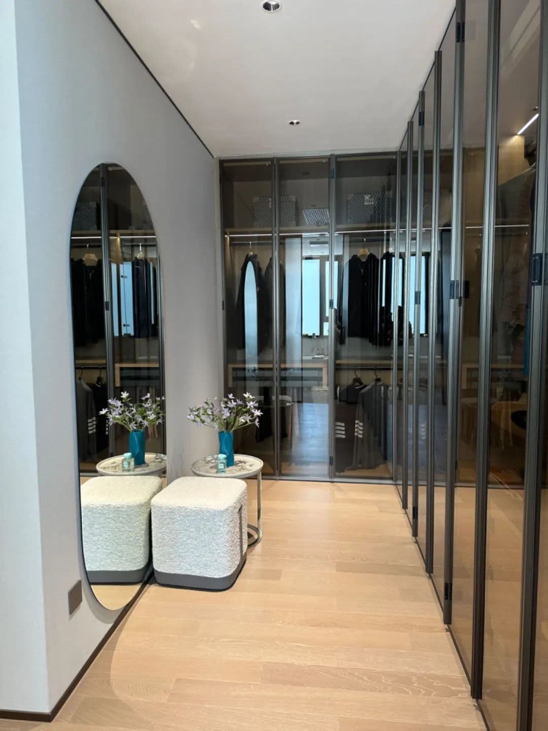 然后,有些豪宅给衣帽间做出了仪式感,形成一种类似玄关的空间,比如在成都金茂·璞逸锦江。