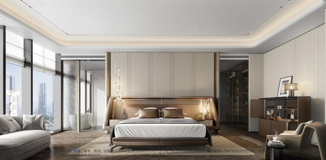 各位,为什么豪宅主卧的视野这件事值得拿出来说,首先还是因为豪宅本身往往占据了很好的位置。也许是有江景,也许是能看到城市的标志建筑,此时,主卧有一个好的视野就显得很有价值。