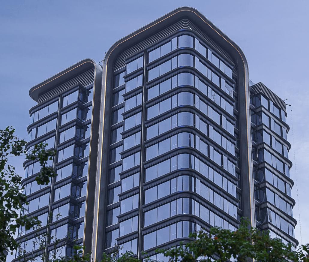 重庆的香港置地·启元,在所有的玻璃转角都做了这种弧度,营造270°转角的观景面。
