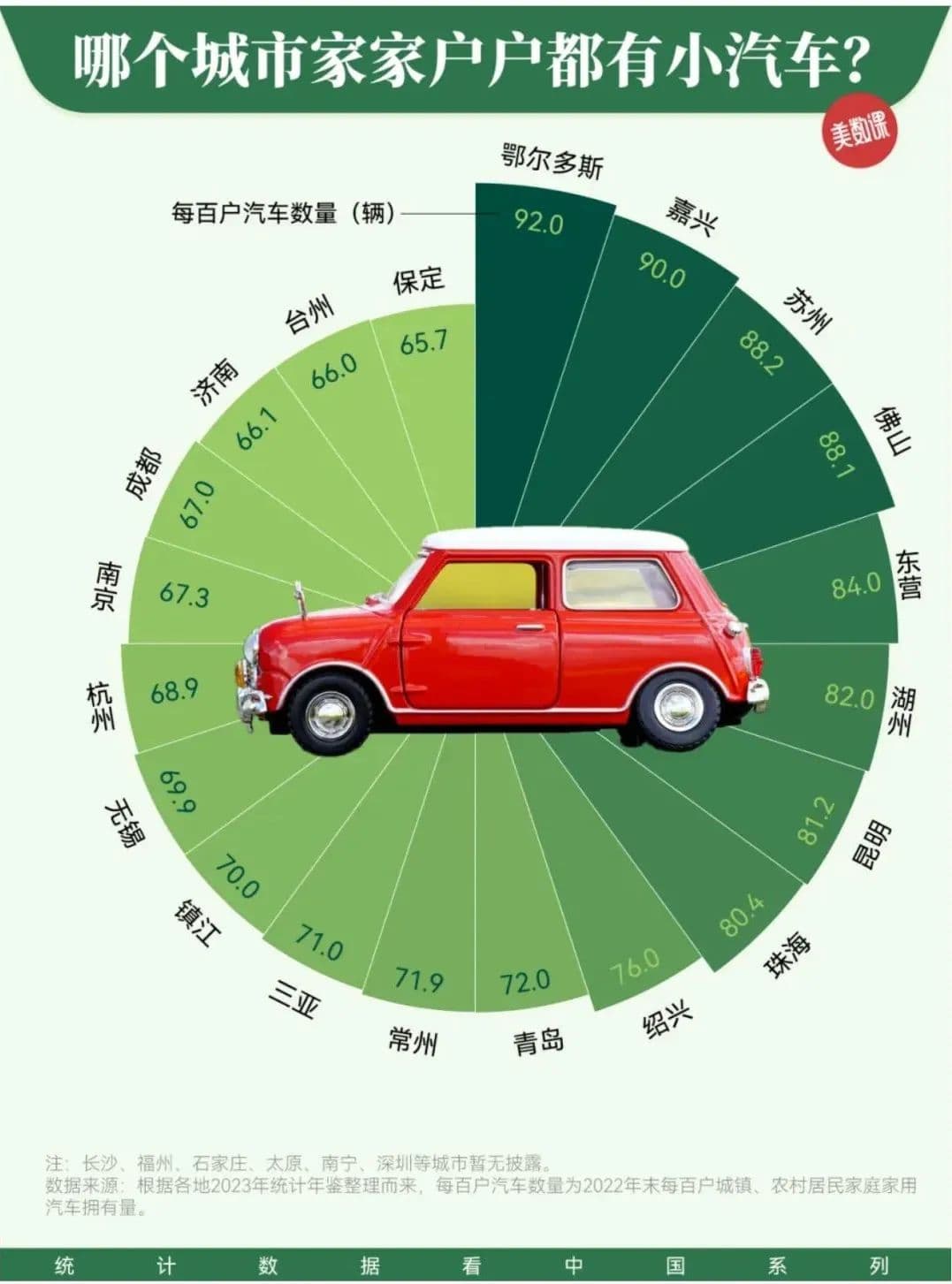 据鄂尔多斯最新官方数据,每百户城镇居民拥有家用汽车103辆,每百户农牧民拥有家用汽车64辆。/图源:小红书@美数 课,已获授权