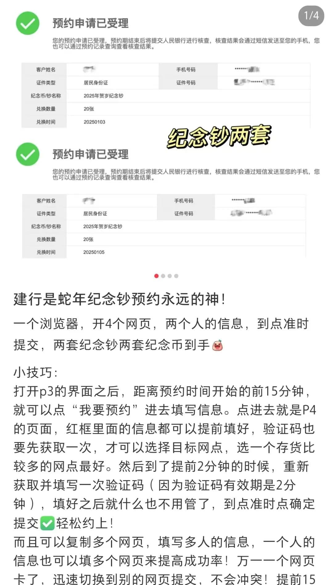 开启预约当天,有网友晒出通过银行网页成功预约蛇币、蛇钞的攻略。(图/小红书截图)