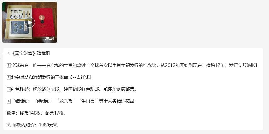 “前几天,在邮局工作的朋友给我发了一条限量版生肖邮币珍藏套装开盒视频。我点开一看,依然是那些‘绝版钞’‘龙头票’组成的大块头,只是加了今年的蛇币、蛇钞、蛇票而已。”小麦对这些装帧套装已经感到麻木。看完这条视频,她顿时觉得家里那堆藏品“实在让人头疼”。