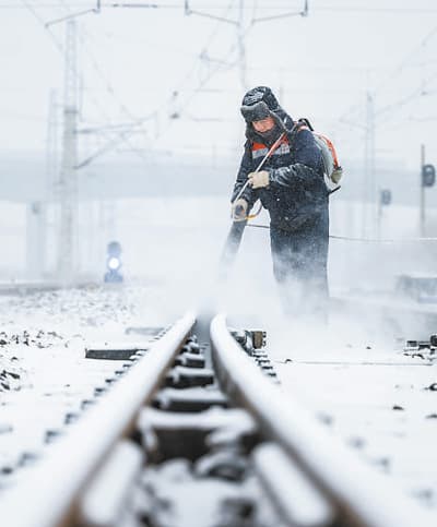 春运期间,国铁沈阳局阜新工务段职工进行道岔除雪作业,保障运输安全。