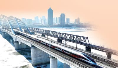 春运期间,复兴号高寒智能动车组奔驰在哈齐高铁松花江特大桥上。