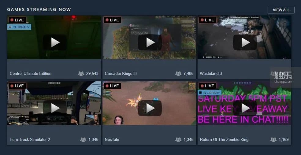 当时的规则大概是,主播使用OBS等流媒体和屏幕录制软件,把直播推流到Steam里,在游戏的详情页里展示;观众数量最多的几款游戏能够进入首页直播栏,依托Steam首页庞大的浏览量,给游戏带来大量曝光。由于直播流量很难监测,大量灰产开始刷直播数据,把质量不佳的游戏频繁推到首页。