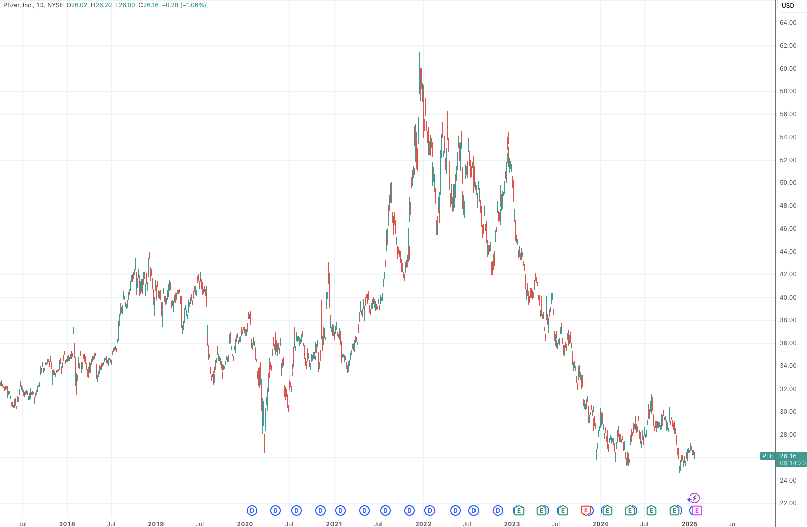 随着新冠疫苗和治疗药物销量骤减,现在辉瑞的市值只剩下不到1500亿美元,差不多是巅峰时期的一半。