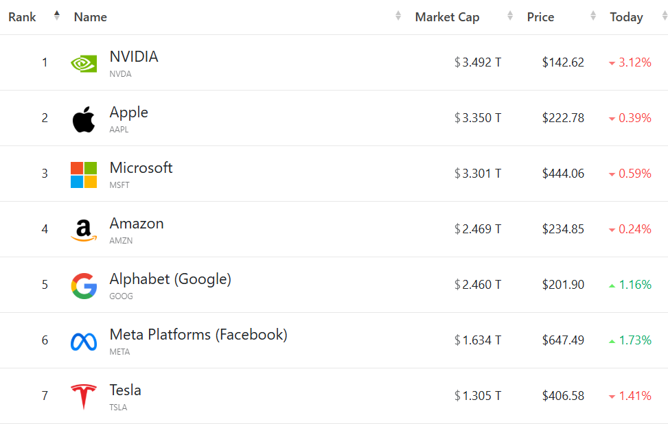 大型科技股多数走低,(按市值排列)英伟达跌3.12%,苹果跌0.39%,微软跌0.59%,亚马逊跌0.24%,谷歌C涨1.16%,Meta涨1.73%,特斯拉跌1.41%。