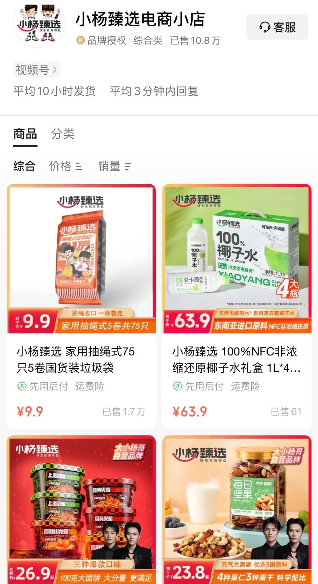 商品均标识“小杨臻选”字样,不复昔日选品的繁杂。(图/小杨哥臻选电商小店)