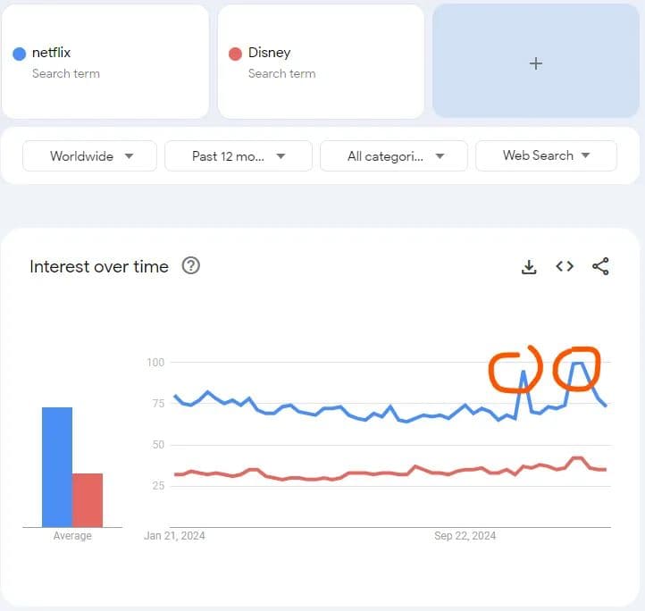 据尼尔森统计,Netflix在每周流媒体前10榜单中排名第一的节目数量比其他所有流媒体的总和还要多,以观看时长计更相当于最接近的竞争对手的3倍。而在全球、美国和英国Google上搜索次数最多的10部电视节目中,Netflix便独占六部,其中《怪物:梅内德斯兄弟的故事》更帮助莱尔和埃里克·梅内德斯成为2024年阅读量最高的维基百科页面之一。