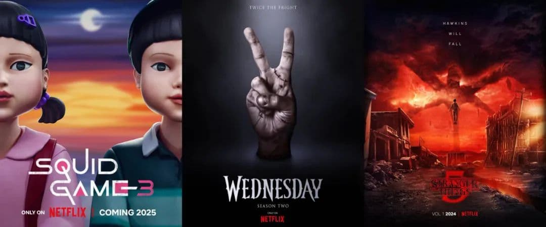 《鱿鱼游戏3》《星期三2》《怪奇物语5》(图源:豆瓣)