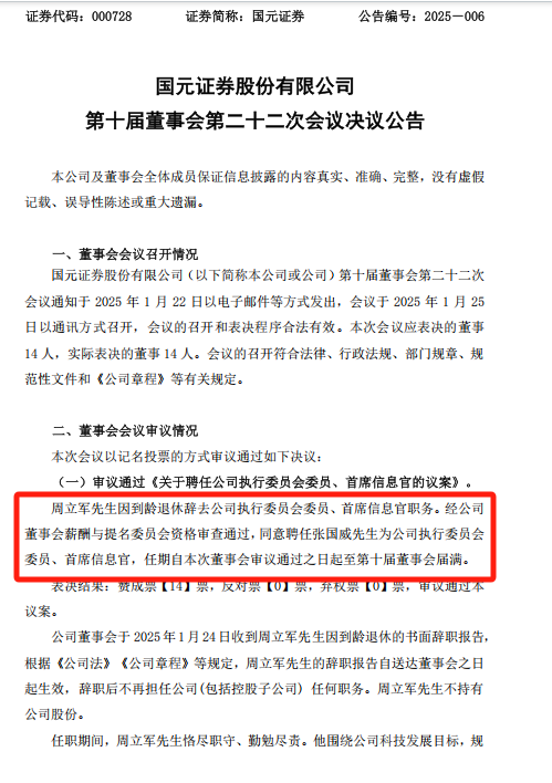 国都证券董事会调整亦在进行之中。1月16日,国都证券发布公告称,拟进行董事会换届。
