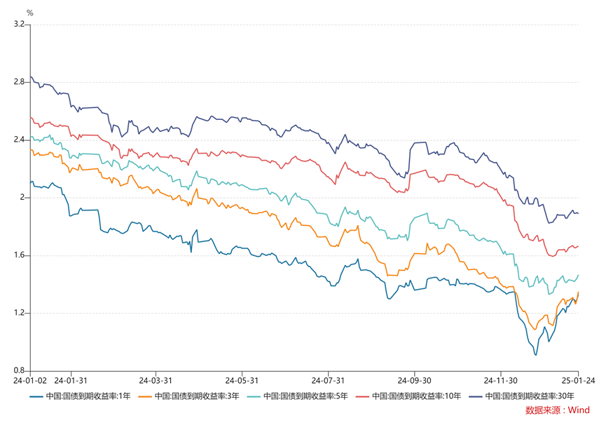 上周利率债收益率短端调整、长端震荡,曲线走平。截至1月24日收盘,1Y、5Y、10Y、30Y国债收益率分别较上周五变动+7.8、+3.5、-0.3、-2.5BP至1.34%、1.47%、1.66%、1.89%,曲线平坦化。存单方面,主要期限收益率整体上行,1M、3M、6M、9M、1Y存单收益率变动+20、+8.8、+11、+8、+3.3至2.20%、1.98%、1.90%、1.80%、1.74%。