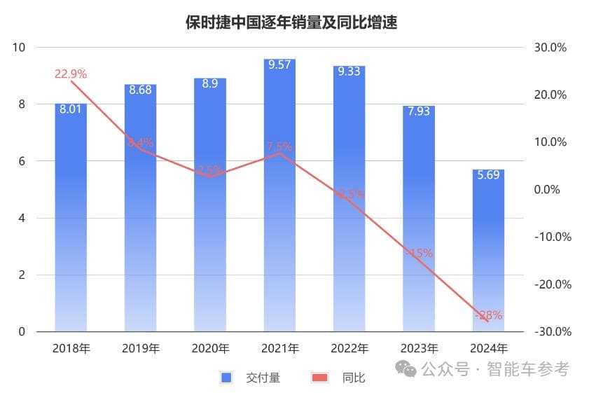 但在中国市场,保时捷交付5.69万辆,同比暴跌了28%。