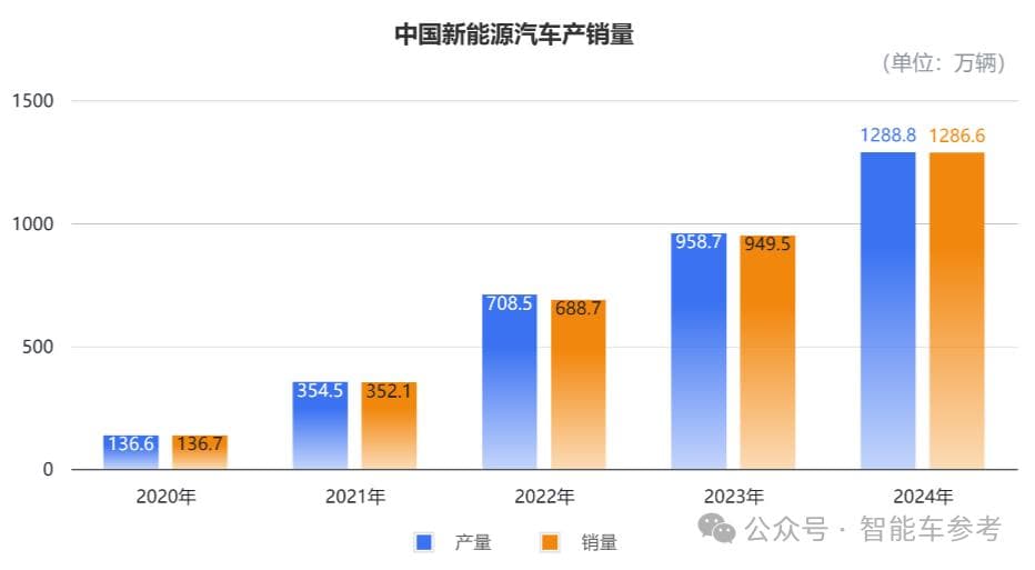 其中,新能源汽车产销量也首次突破1000万辆,分别达到1288.8万辆和1286.6万辆,同比分别增长34.4%和35.5%。
