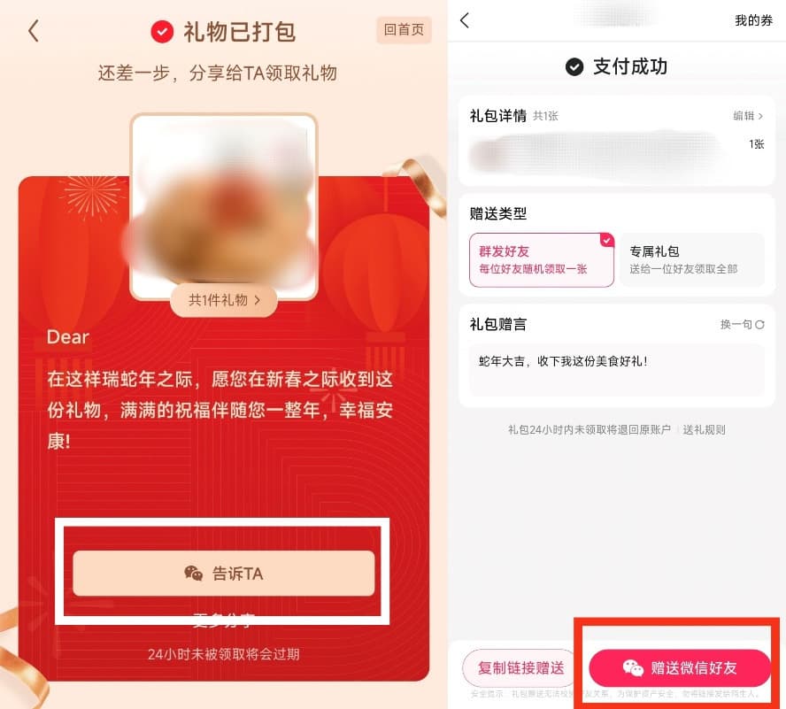 一定程度上来说,这一路径相对微信送礼来说稍显复杂,链接的方式无疑也少了很多仪式感。
