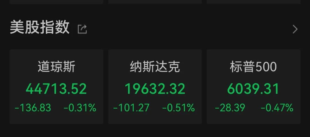 市场方面,美股三大指数集体收跌,纳指跌0.51%,标普500指数跌0.47%,道指跌0.31%。