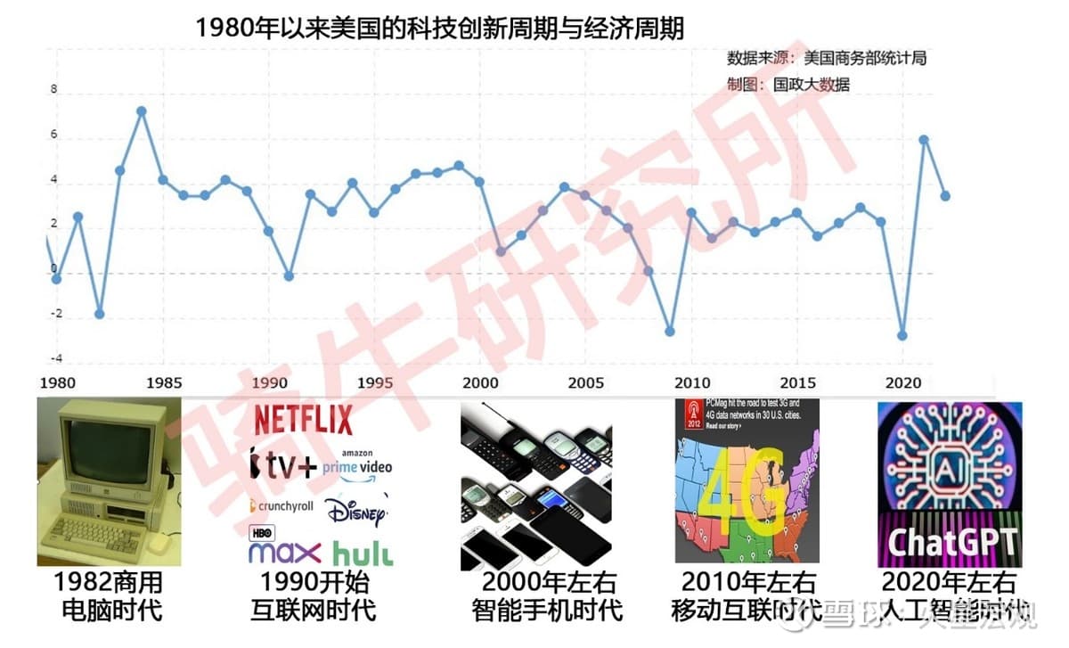 但三郎在研究经济问题时,也率先研究到美国的科技周期在推动美国经济周期复苏过程中的巨大推动力。