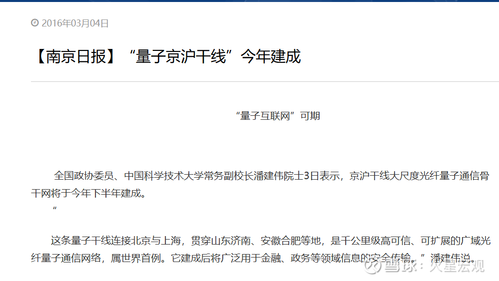 9年前神吹得一塌糊涂、甩了美国几条街的量子通讯技术,如今不仅不见身影,连提及它的声音都消失得无影无踪,原计划中的多条跨省量子通信干线建设已经全部停工。如果不是互联网的网络记忆,估计胡锡进、张维为、项立刚们都不会承认当初他们是如何吹捧量子京沪干线引领世界科技的。