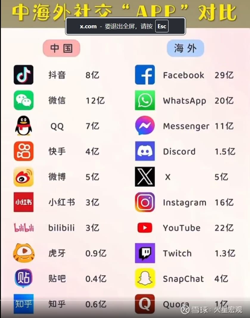 前些天我们刚自嗨完霸榜欧美软件商店下载排行榜的小红书,面对各种来历不明的所谓洋账号,又是对账,又是交流,似乎小红书已经引领全球社交媒体了。但静心下来算算帐,我们前十大自媒体APP用户加起来除以中国14亿人,用户系数才2.85,人家一个facebook的用户除以美国3.4亿人,用户系数达到了8.53,是我们10大APP的3倍。一个小红书的用户系数才0.21,只有facebook的2.5%,我们不是该羞耻吗?怎么还在自嗨了?