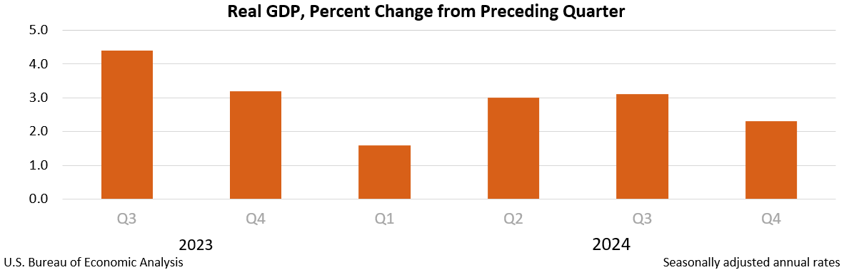 美国2024年Q4经济增速不及预期,全年增长率放缓至2.8%
