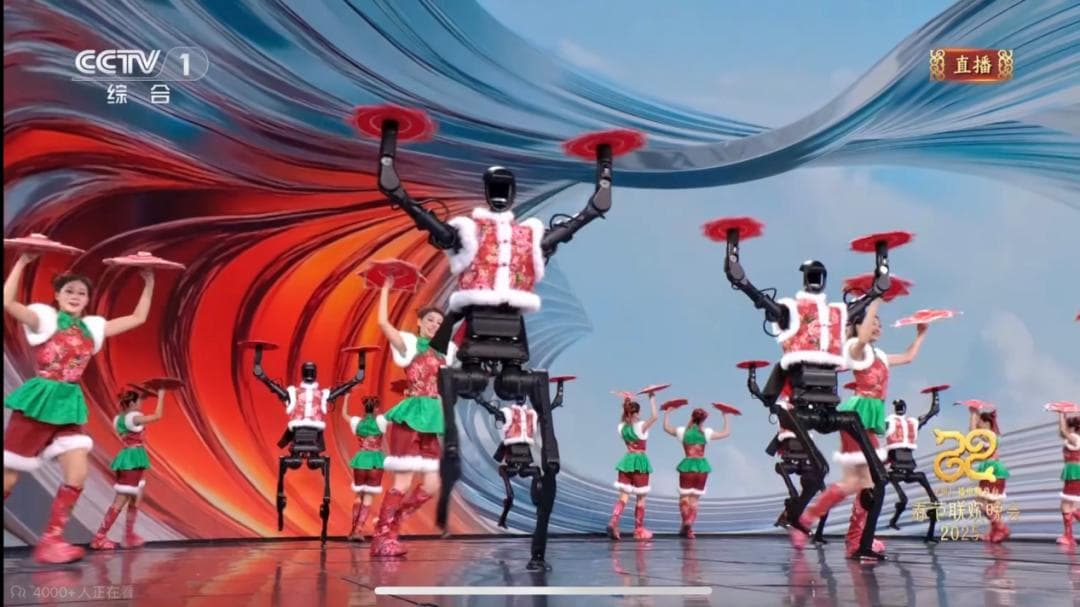 DeepSeek总部位于杭州,此时同样爆火的还有来自杭州的宇树科技。2025年央视春晚舞台上,宇树科技旗下机器人H1惊艳亮相。十几个人形机器人身穿东北特色花棉袄,手持红手帕登上舞台,与舞蹈演员们默契配合,上演了一场创意融合舞蹈《秧Bot》。