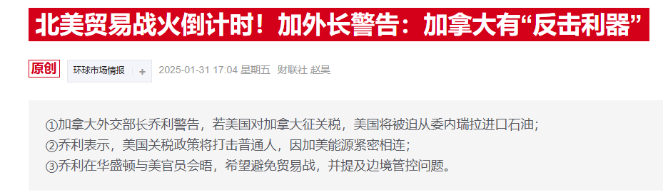 隔夜,美国总统特朗普表示,他计划于2月1日兑现对墨西哥和加拿大进口商品征收25%关税的承诺。这一威胁引发了市场对贸易战的担忧,可能会削弱美国乃至全球的经济增长,推升了避险需求。