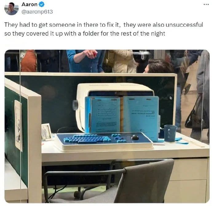 在纽约中央车站快闪活动中,马克的电脑出了故障。(图/@Aaron)