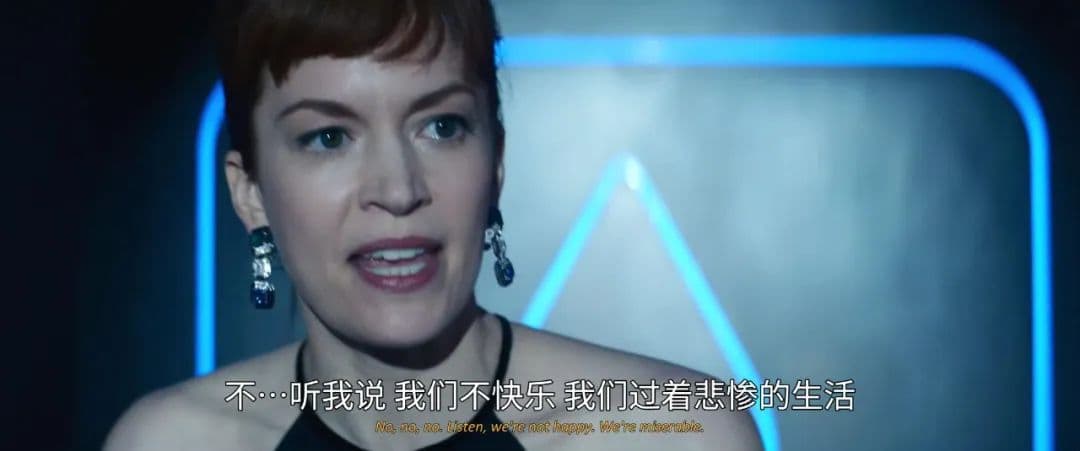 回到《人生切割术》真正的第一幕剧情,女主角海莉被自己亲手送进“牢笼”后,她的工作人格毫无仪态地趴在会议桌上首次苏醒,被迫回答了五道问题。