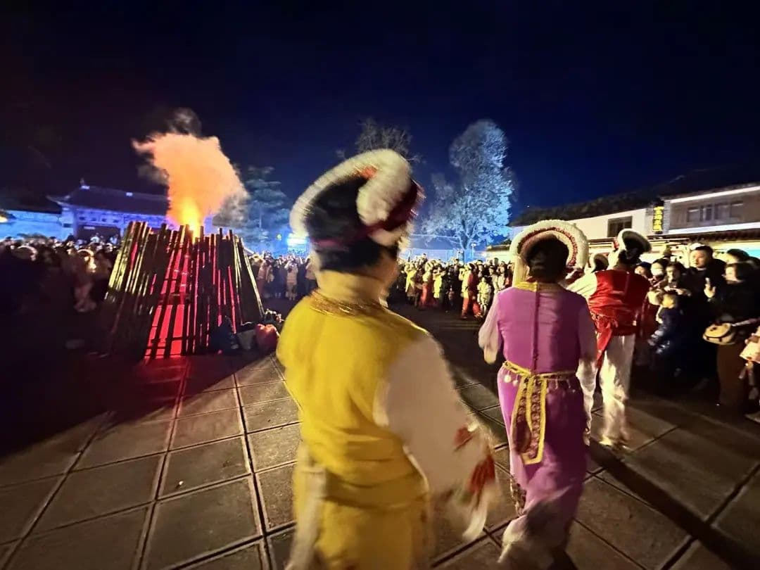 2025年春节,在北京工作的95后女孩小苗没有回老家。大年初一这天晚上,她和母亲一起在云南大理古城参加篝火晚会,手牵手围着“科技篝火”,边唱“天下相亲与相爱”边跟随音乐舞动。