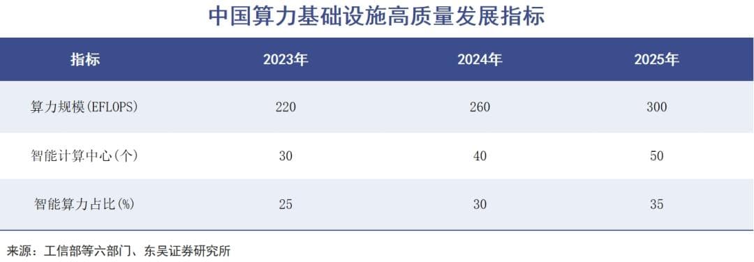 此前,六部门联合印发《算力基础设施高质量发展行动计划》,其中指出到2025年,我国算力规模将达到300EFLOPS,智能算力占比要达到35%。