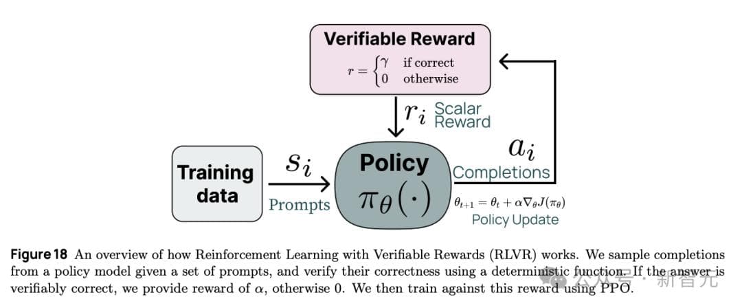 这种新的训练方法专门针对具有可验证结果的任务,例如数学问题求解和指令遵循问题。根据训练数据和提示词,明确判断问题是否完成,从而更新策略函数。