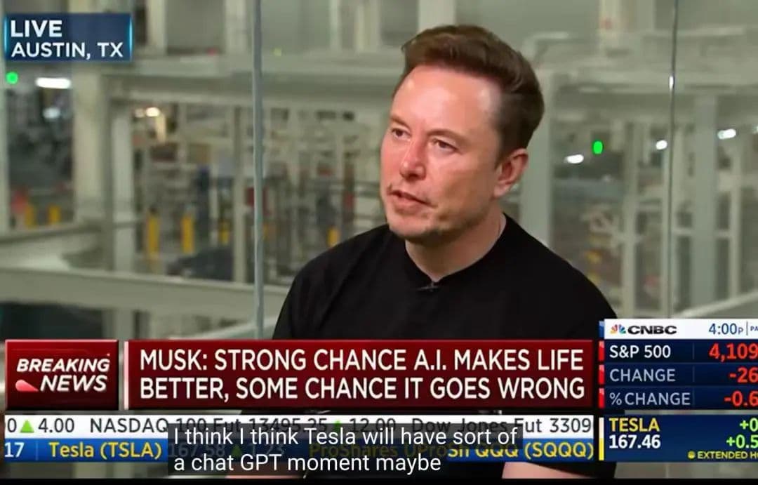 由于受到了 ChatGPT 的影响,在 2023 年 5 月份的一次采访中,马斯克还曾一脸认真地说: