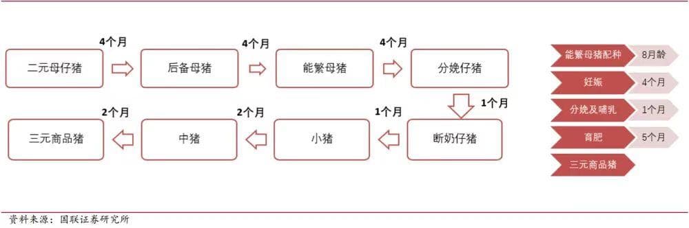一般来说,从新生母猪到生猪出栏大约需要约18个月。每当生猪供给不足、猪肉价格上涨时,养殖户就会积极补充能繁母猪扩大生产,但需要到18个月之后才能实现生猪供给量的增加。相反,一旦猪价跌破盈亏平衡线后,养殖户开始淘汰能繁母猪减少生产,也需要18个月的时间实现生猪供应量的减少,猪价将再次迎来上涨。