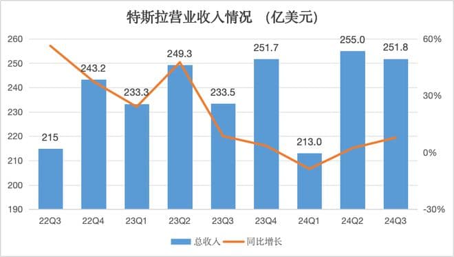 财报显示,特斯拉第三季度总营收为251.8亿美元,同比增长8%。