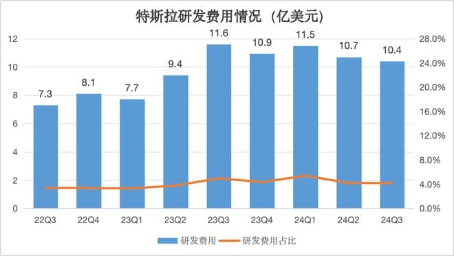 费用方面,特斯拉第三季度的研发费用、销售和行政费用同比均有所下降,降幅分别为10.5%、5.3%。这应该与第二季度的裁员导致的人员薪酬下降有关。