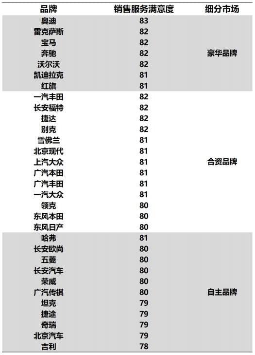 就各项测评结果来看,用户感知质量得分80.7分,同比提高0.2分,连续3年增长,首次超过用户预期;感知价值得分79.5分,同比增长1.9分,达到近十年最高水平。测评指出,服务质量提升是推动用户感知质量提升的主要原因,质量可靠性则同比下降。在服务质量方面,售后服务用户满意度为81分,同比提高3分;销售服务用户满意度为81分,同比提高2分,连续2年增长;性能设计用户满意度为81.4分,同比提高2.4分;质量可靠性满意度为78.5分,同比下降0.5分,变速、空调和座椅三个因子质量可靠性满意度均同比下降。