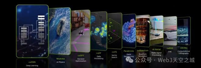 我们最著名的应用程序库之一是QDNN,它民主化了我们所知的人工智能。这些加速库已涵盖了众多不同领域,使得加速计算似乎无处不在。这是因为我们采用这种架构覆盖了几乎每一个行业。现在,CUDA加速计算已达到临界点。